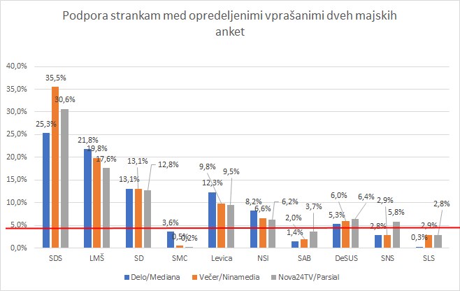 LMŠ in DS imata realno nižjo podporo, kot so jo izmerili ti anketarji. Če jo sploh so. Te ocene so narejene nekoliko čez palec ali pa med naročniki na časopis Delo ali pa Večer.