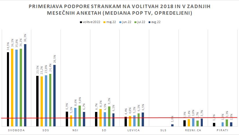 Povprečje treh avgustovskih anket: SDS do dveh dodatnih sedežev na račun Svobode