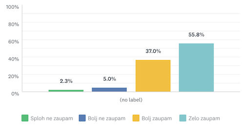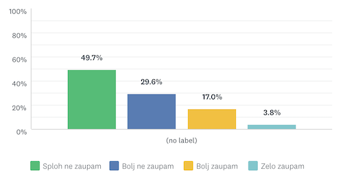 Anketirane smo povprašali tudi, koliko zaupajo vladi pri soočanju z epidemijo. Razlika je tu seveda pričakovana. Je pa med volivci vladnih strank le 7 % takih, ki vladi pri soočanju z epidemijo ne zaupajo, medtem ko vladi zaupa (bolj ali zelo) kar 21 % tistih, ki izražajo namero, da bi volili stranke leve opozicije.