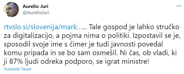 Tezko je razumeti opazke in se posebej nasprotovanje na imenovanje @MBAndrijanic za ministra za digitalizacijo. Koncno gre za eno najpomembnejsih podrocij za naso konkurencnost in je vsak korak v to smer se kako pomemben. S tem se daje jasen signal celotni javni upravi