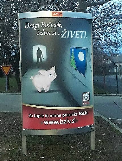 Prste je imel seveda vmes ponovno Savič, LPP pa ga je ubogal, češ da oglas »vzbuja javne polemike ter nestrpnost«. Da istočasno svobodno poteka kampanja s sloganom: »dragi Božiček, želim si živeti«, pri čemer se na moža v rdečem ne obrača otrok temveč prašič, zgolj poudarja tragikomično bizarnost situacije.