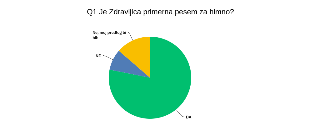 V skupnem smo prejeli 208 odgovorov bralcev Domovine in velika večina se je strinjala s tem, da je Zdravljica primerna pesem za himno (78,16%). Preko trinajst odstotkov vas je imelo svoje predloge.