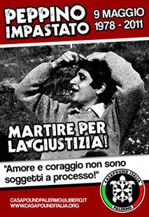 Plakat o predavanju Case Pound na temo Peppina Impastata - "Mučenca za pravico"