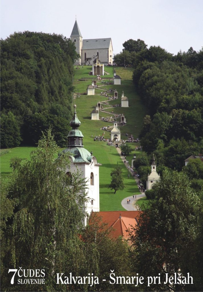 Šmarska farna cerkev Marije Vnebovzete, v ozadju pa kalvarija in baročna cerkev sv. Roka