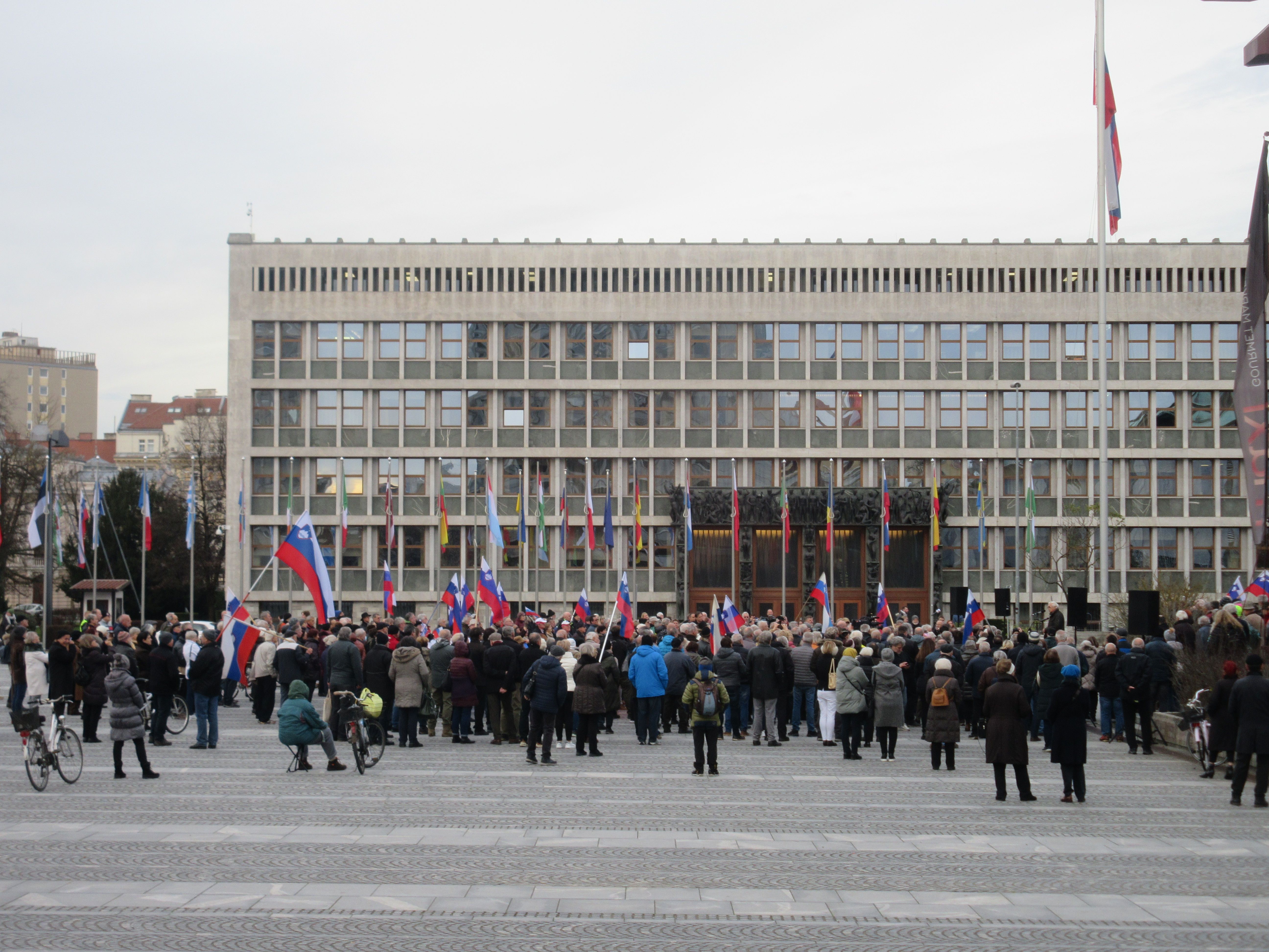 Dan po "Jenullovi stavki" Janša pripeljal ljudi pred parlament v plemenit namen (foto)