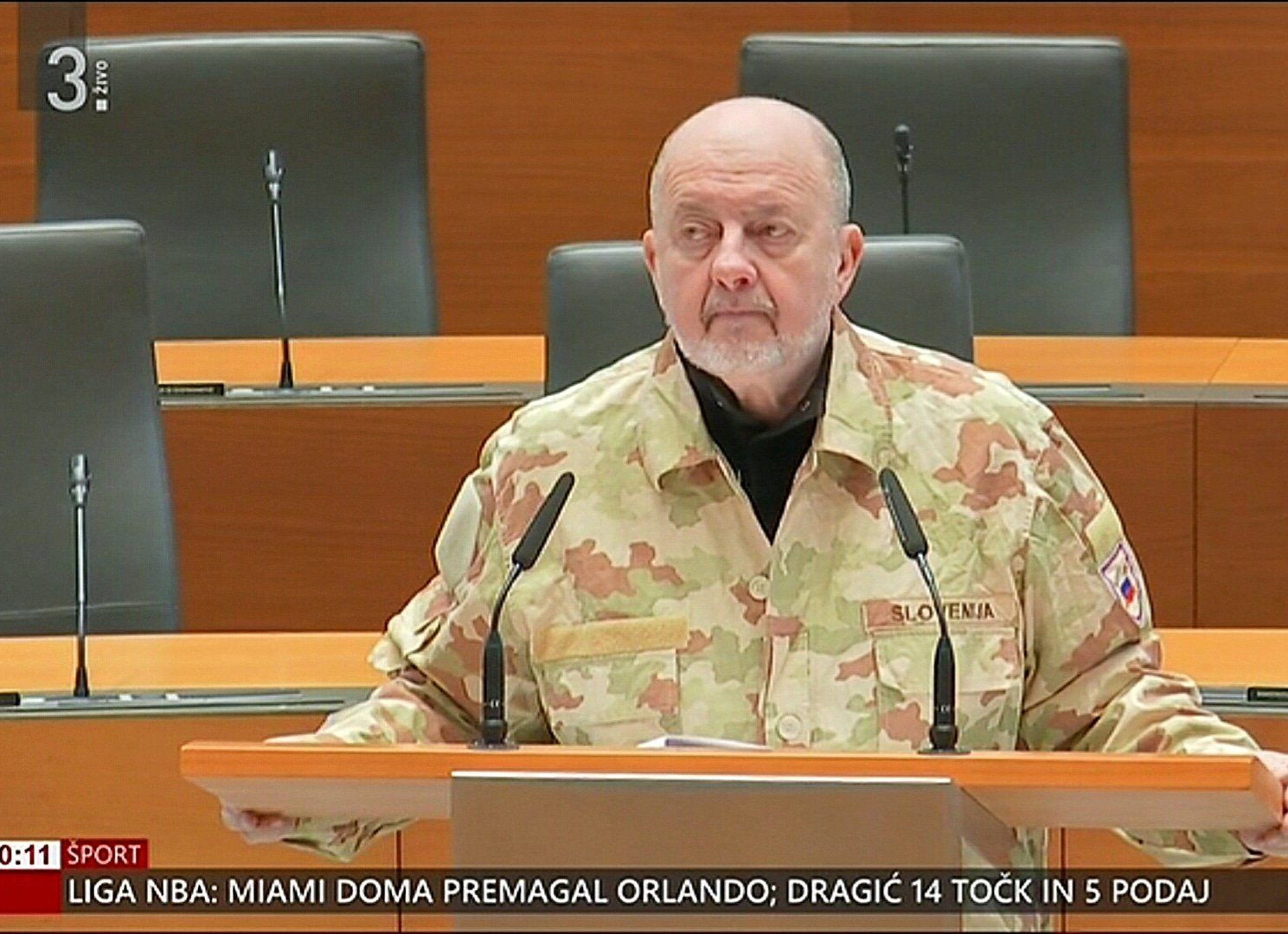 Zmago Jelinčič ob svojem nastopu v uniformi Slovenske vojske: "Vidim, da se smejete, ampak smejete se uniformi Slovenske vojske. In to bo zdaj prepovedano in ni rečeno, da me minister za notranje zadeve ne bo dal aretirati, ker bom šel ven v uniformi, ki spominja na vojsko, ki lahko neti sovraštvo."