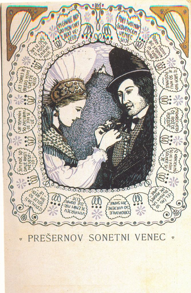 Upodobitev Sonetnega venca slikarja Maksima Gasparija. Vir: arhiv Ivana Sivca