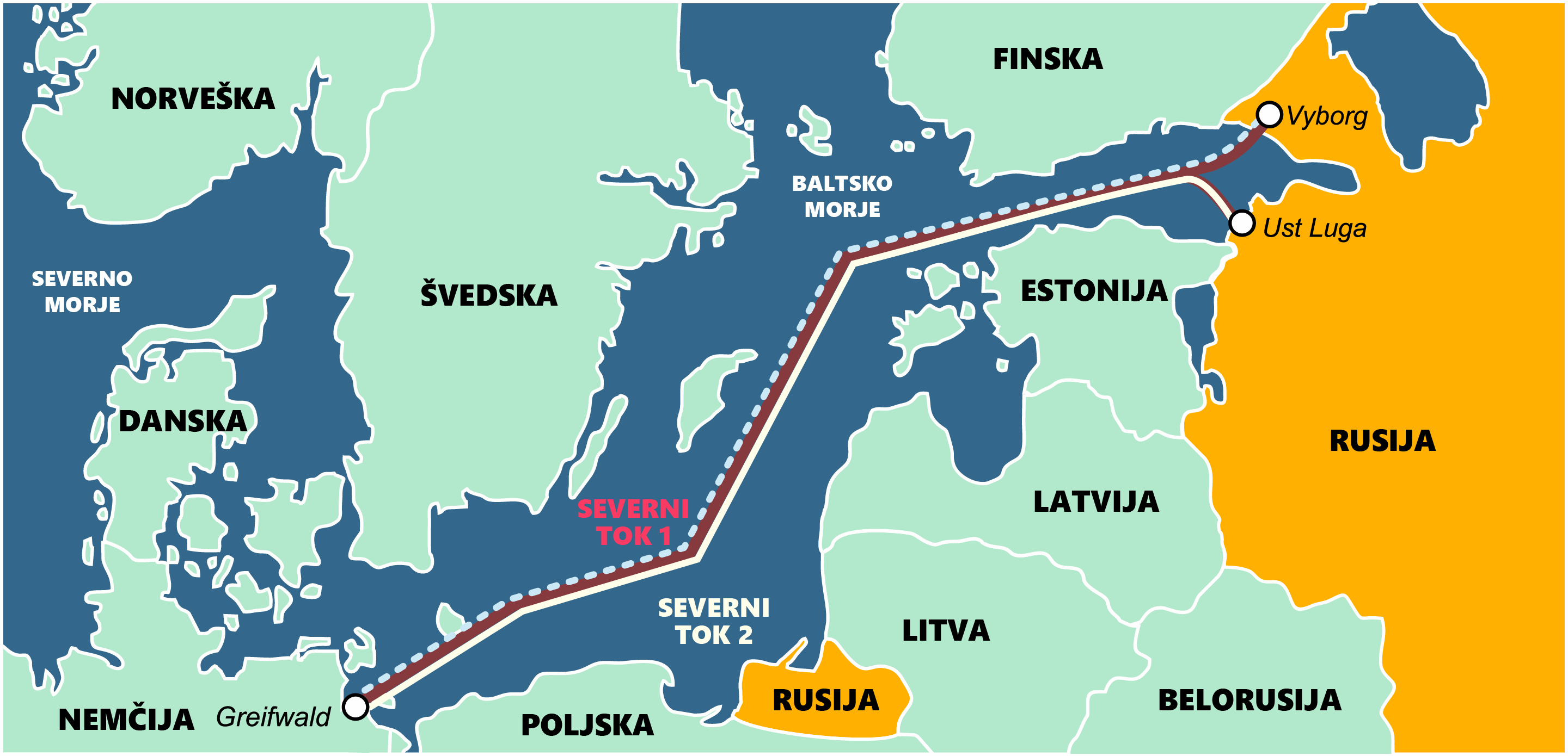 Potek Severnega toka 1 in 2
