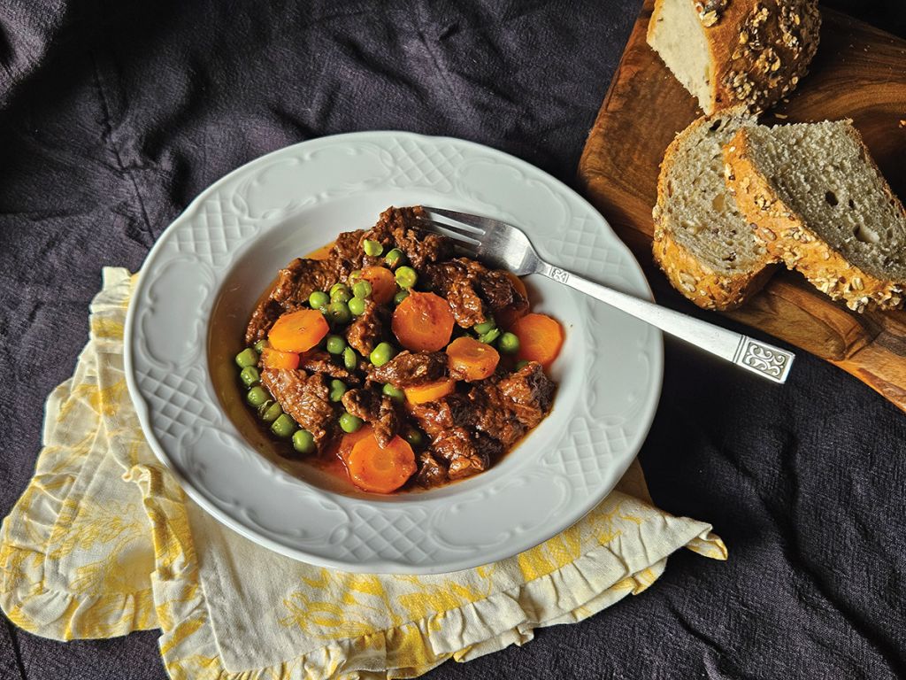 Goveja enolončnica z grahom in korenjem