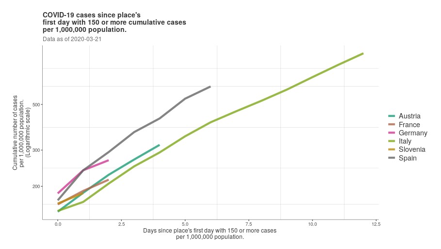 V Sloveniji se ob tretji smrtni žrtvi virusa trenutno po uradnih statistikah število okuženih ne povečuje eksponentno. Glede na število prebivalcev je število okuženih pri nas primerljivo s tistim v Franciji in glede na smer bolj optimistično od avstrijskega.