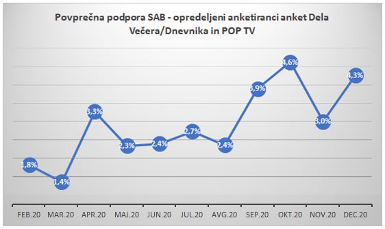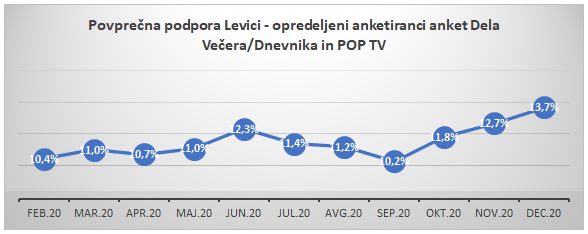 Povprečna podpora javnomnenjskih anket v zadnjih treh mesecih: 12,7 % opredeljenih sodelujočih