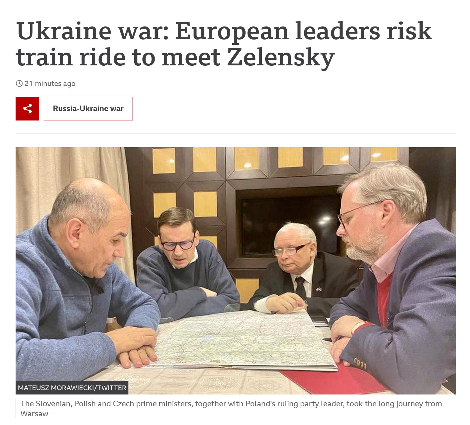 “The decision of the Prime Ministers of Poland, Czechia and Slovenia to go to Kyiv today is akin to world leaders going to London during the Blitz in 1940”.