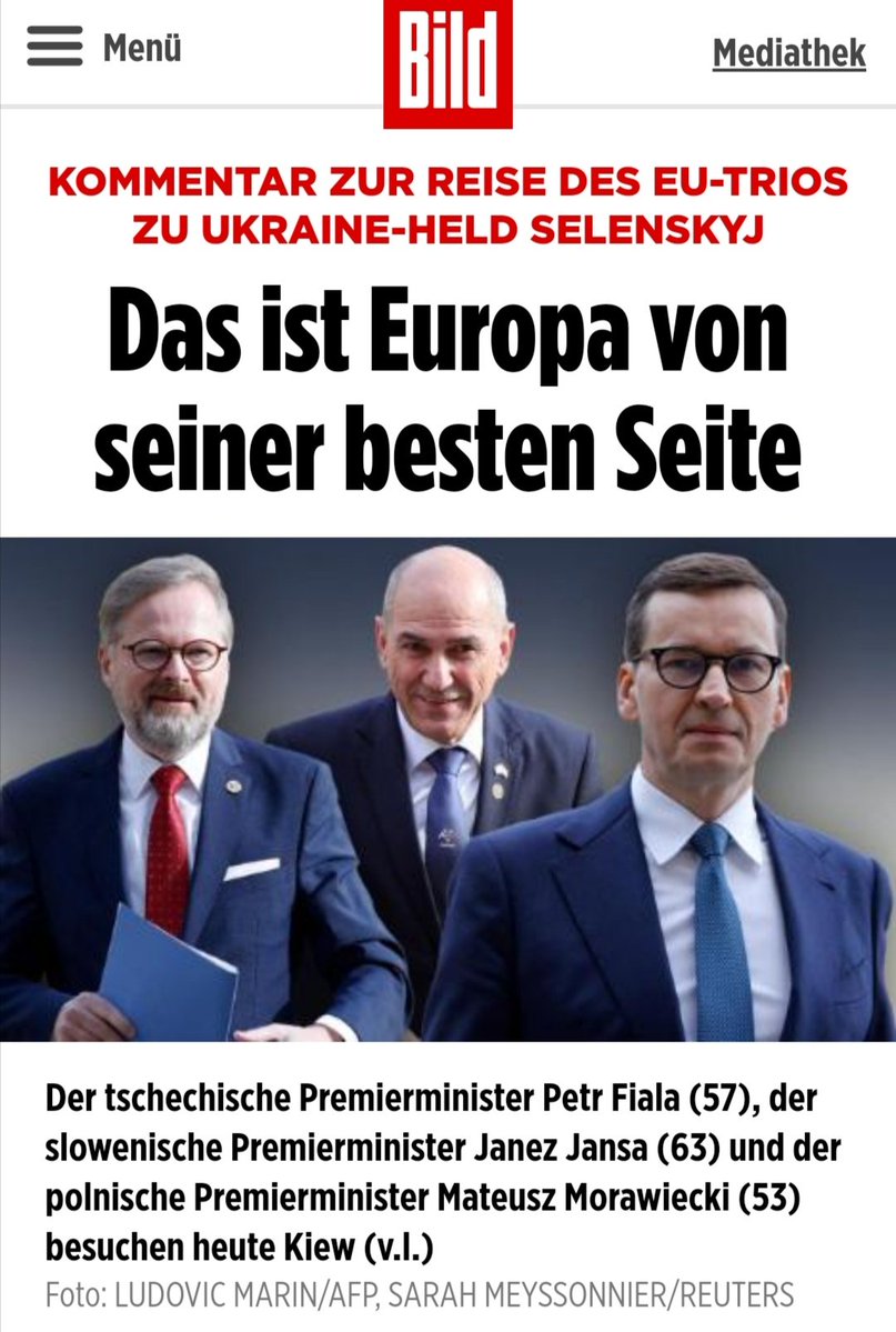 Ni važno kakšni so osebni motivi teh treh politikov, da so odpotovali v Kijev. Zgodba tukaj je,da so predstavniki držav članic EU & Nata podprli Ukrajino in njen boj proti ruskemu okupatorju. In to je pomoč Ukrajini. Žal 🇸🇮 ljudje v levo-desni histeriji tega niso sposobni videti. https://t.co/lRgDYvSJ5h