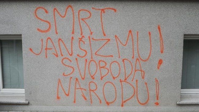 Protestniki pišejo: Smrt janšizmu! Ne:koč so vpili :Smrt fašizmu.