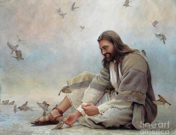 Mati Tereza odgovori, da bi z veseljem nekaj pojedla. Bog vzame pločevinko tune in kos rženega kruha ter ga začne deliti.