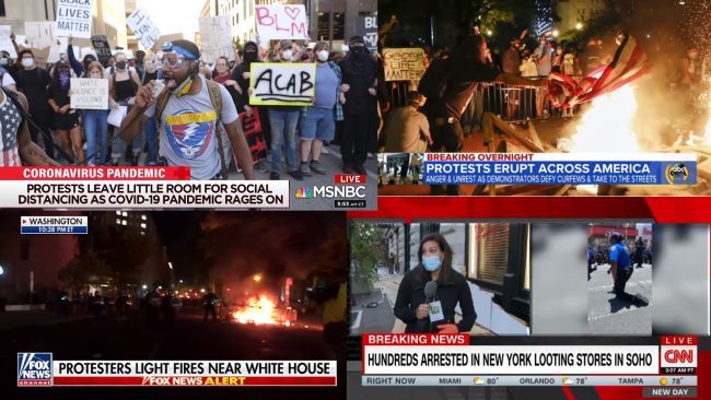 V medijih so se v prvih dneh krize vrstile razprave o tem, da so protesti le odziv na sistematično nasilje policije nad temnopoltimi in podzavestni rasizem, ki je še vedno prisoten med Američani. Medijsko prilivanje olja na ogenj je sprožilo tudi kasneje ovrženo ugibanje, da večina aretiranih izgrednikov ni bilo prebivalcev Minneapolisa, ampak da gre za bele nacionaliste, ki prihajajo iz drugih zveznih držav. Ikonografija in vpitje izgrednikov pa spominja na anarhistične in skrajno leve skupine. Predsednik Trump, ki mu tudi konservativni komentatorji očitajo mlačen odziv na dogodke, je že napovedal, da bo Antifa razglasil za teroristično organizacijo.