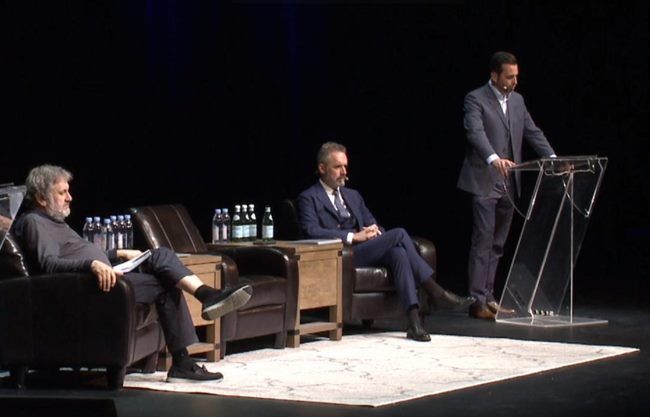 Debata med mislecema je sicer postregla z zanimivimi iztočnicami. Na začetku sta tako Peterson kot Žižek imela na voljo čas, da postavita svoje videnje problema. Začel je Peterson. Ta se je v svojem nagovoru osredotočil na Komunistični manifest kot temelj ideologije, ki naj bi jo predstavljal Žižek.