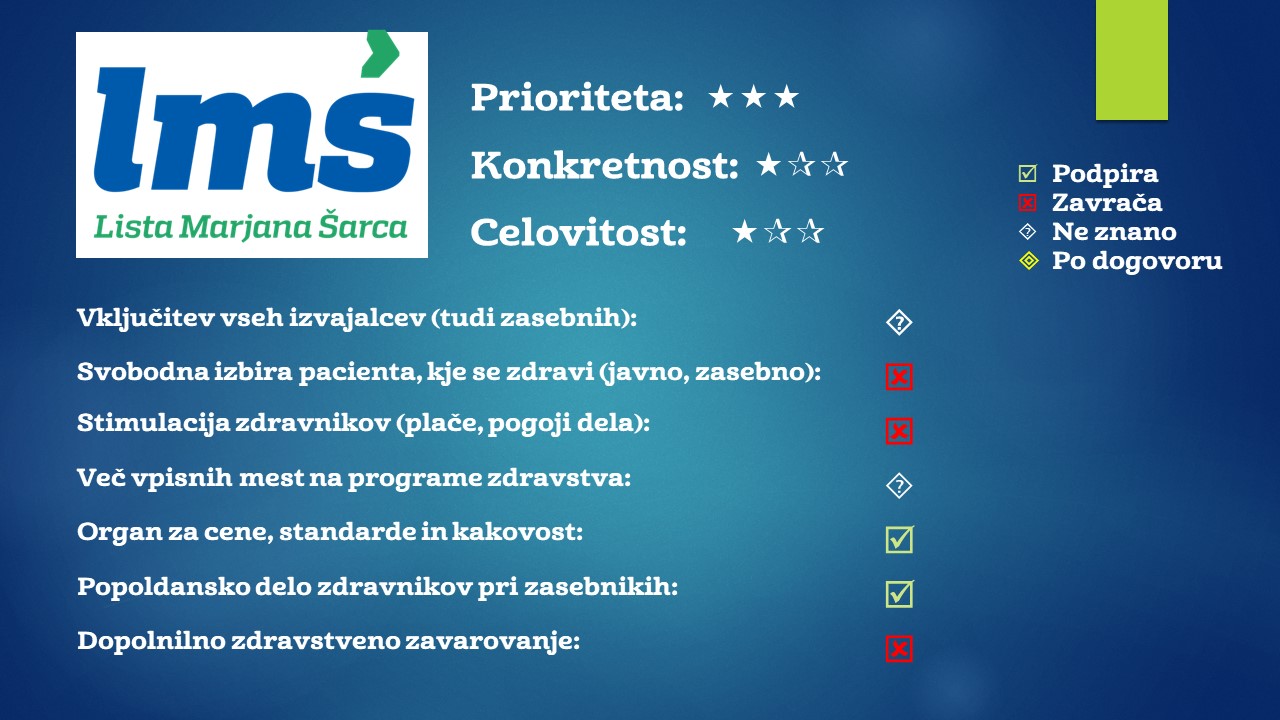 Več o konkretnejših stališčih stranke LMŠ najdete v našem Vodniku po volilni izbiri.