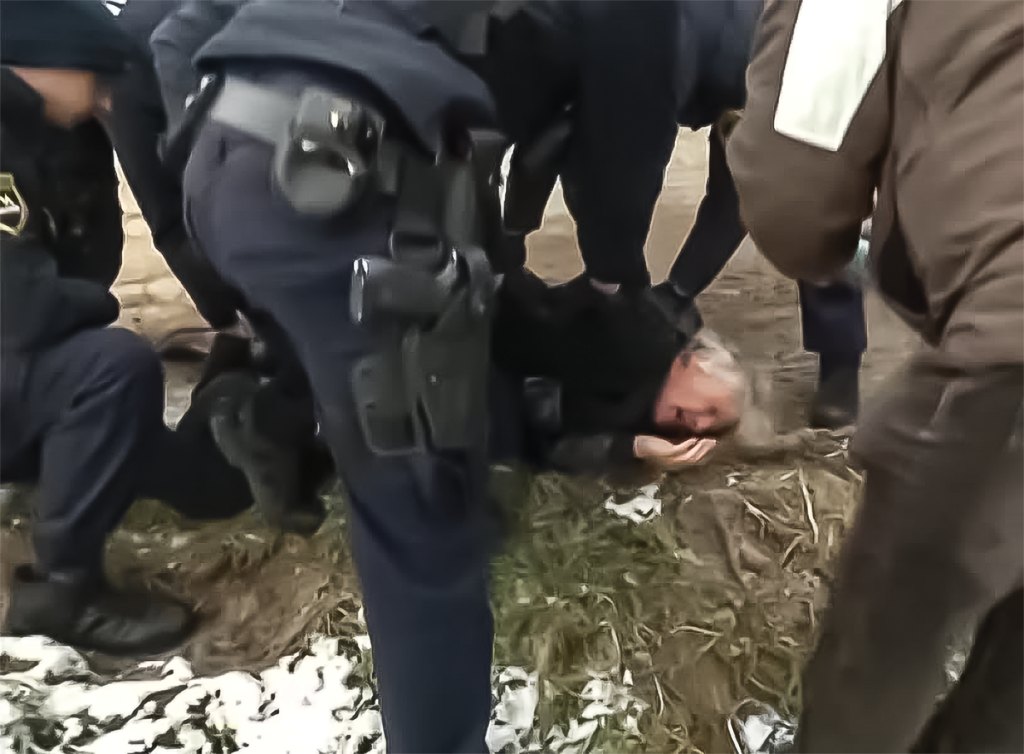 Aleš Mrzel: »Po nekaj korakih so me spustili, da sem padel po tleh. Nato so me zverzirano udušili s prijemi.« Vir: posnetek zaslona