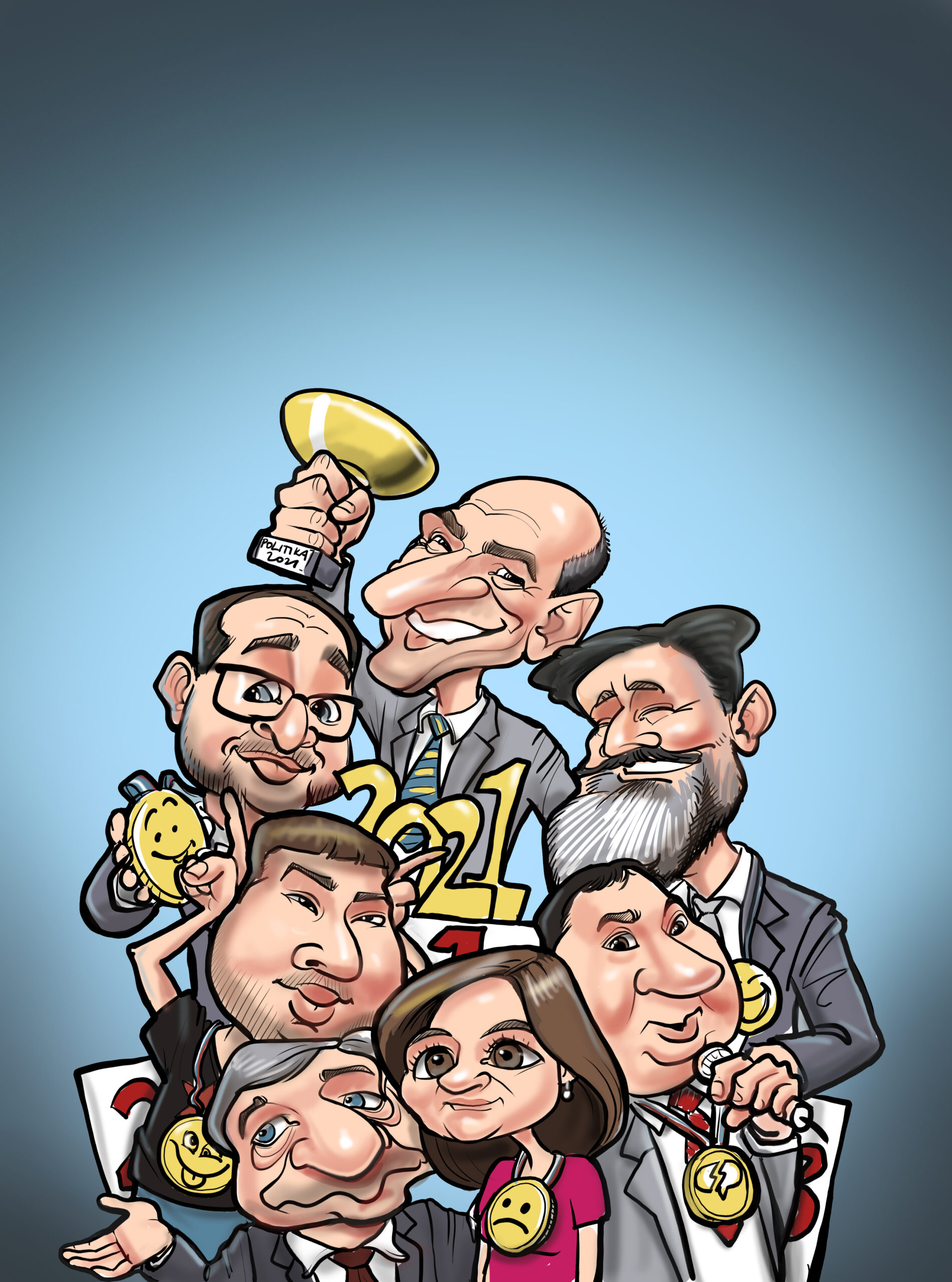 V tokratni karikaturi smo upodobili politične zmagovalce in poražence leta 2021. Prepoznate vse? Naj vam pomaga tale članek.