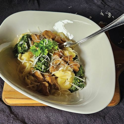 Količina: za 2 osebi Zahtevnost: Enostavno Čas priprave: 30 minut Sestavine: 250 g sirovih tortelino 250 g zamrznjene špinače 200 g jurčkov (zamrznjenih ali svežih) 50 ml smetane za kuhanje maslo olje 1 manjša čebula 2 stroka česna krušne drobtine...