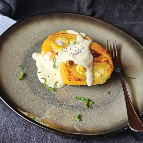 Količina: za 4–5 oseb Zahtevnost: Srednje zahtevno Čas priprave: 2 uri Sestavine Za testo: 250 g moke 20 g svežega kvasa 2 ščepca soli 150–160 ml mlačne vode 1 dl oljčnega olja Za nadev: 500 g polnomastne nepasirane skute 90...