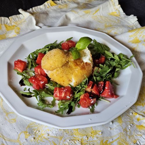 Količina: za 1 osebo Zahtevnost: Srednje zahtevno Čas priprave: 15 minut Sestavine: 1 burrata 1 jajce moka krušne drobtine olje za cvrtje rukola 1 paradižnik sol oljčno olje balzamična glazura Postopek: Burrato odcedimo in dobro popivnamo s papirnato brisačko. Pripravimo...