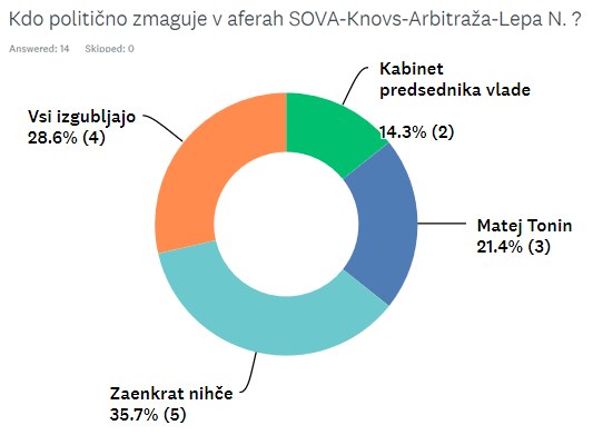 Pet od štirinajstih jih meni, da zaenkrat nihče ne zmaguje oz. izgublja, štirje so prepričani, da izgubljajo vsi, trije boljšo pozicijo pripisujejo Mateju Toninu, dva pa kabinetu predsednika vlade.