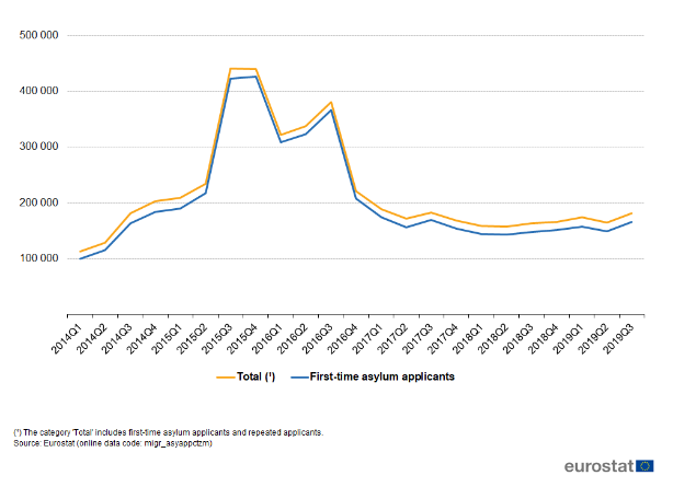 Eurostat je objavil statistične podatke za večino lanskega leta o gibanju prosilcev za azil v Evropski uniji. Obdobje podatkov se nanaša na čas med januarjem in septembrom 2019.