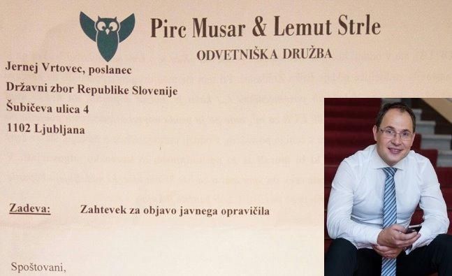 A še preden je nova parlamentarna preiskovalna komisija začela z delom, je na Vrtovčev naslov iz od odvetniške družbe Pirc Musar & Lemut Strle prišel zahtevek za opravičilo v zvezi z izrečenim v omenjeni Tarči, sicer bodo proti njemu "uporabili vsa pravna sredstva".