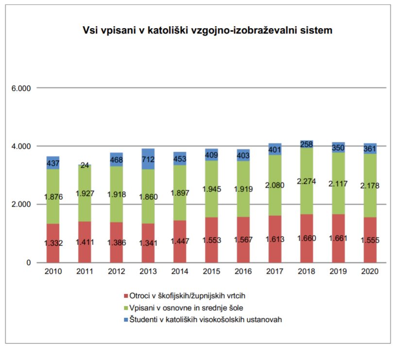 Brez cinizma pa je nekoliko bolje, kar se tiče vključenosti otrok in mladine v katoliške vrtce, osnovne in srednje šole ter katoliške visokošolske zavode.