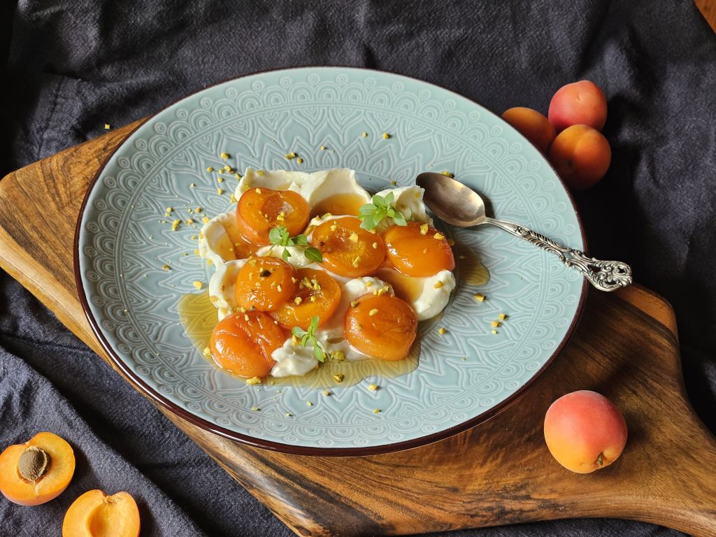 Kremni posladek s pečenimi marelicami