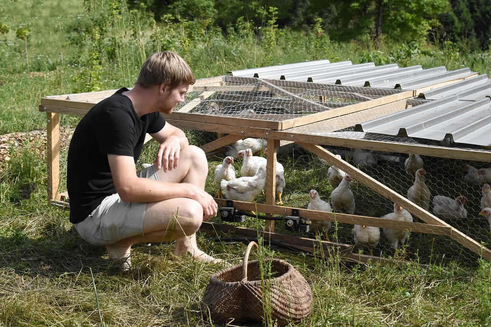 Miha: S tem najinim načinom hočeva pokazati tudi, da ni nujno, da imaš zelo veliko stroškov s pridelavo, ampak da se da z majhnimi vložki. Ne potrebujeva celega hleva, da lahko začneva gojiti piščance, ampak za 200 evrov lesa in mreže.