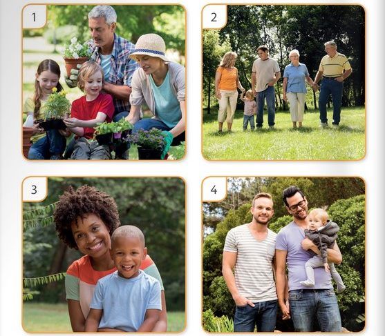 Na strani 50 tako na vrhu najdemo napis: »Družine so lahko različne.«, pod njim pa štiri fotografije. Na njih so družina z dvema otrokoma, družina s starimi starši, mati z otrokom in dva moška z otrokom.