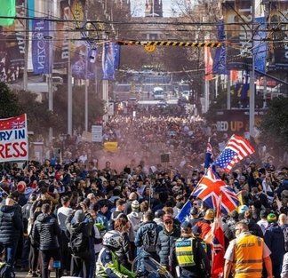 Za približno polovico od 25 milijonov Avstralcev trenutno velja zaprtje javnega življenja, le 11 % jih je polno cepljenih, včeraj pa so potrdili 163 novih okužb s koronavirusom, večinoma različice delta. Zaradi napovedi, da bodo omejitve morda ostale do oktobra, se je v večjih mestih - Melbournu, Sidneyju in Brisbanu - zbralo več tisoč protestnikov, ki so se spopadli s policijo, po zraku so letele steklenice, več ljudi je bilo aretiranih.