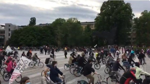 Če so opoldanski protesti Facebook skupine Vseslovenska vstaja naroda zaradi nizke udeležbe klavrno propadli, pa se je na protestih radikalnih levičarskih skupin zbralo kar lepo število kolesarjev.