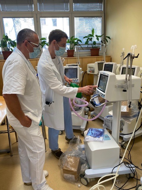 Bitenčevih respiratorjev so bili v Bolnišnici Celje zelo veseli (vir foto: Twitter SB Celje)