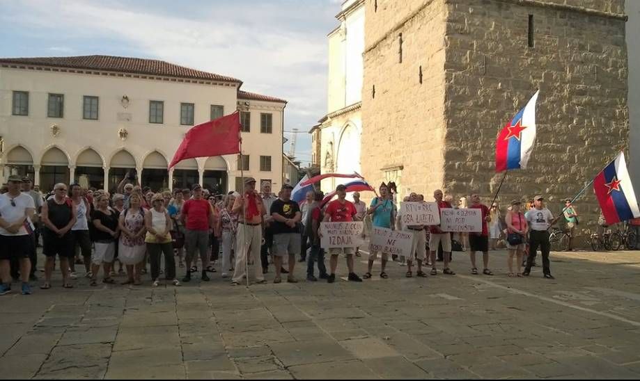 Na Titovem trgu v Kopru shod proti RTV, pred RTV hišo pa grožnje Možini