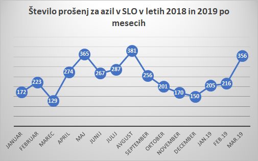 Za mednarodno zaščito je po podatkih ministrstva za notranje zadeve do konca marca zaprosilo 777 ilegalnih migrantov, lani v tem času je bilo takih primerov 524. Zanimivo je, da je med njimi zelo malo žensk, letos le 61, po državah izvora pa še naprej prednjačijo Alžirci, Maročani, Afganistanci in Pakistanci. Letos je Slovenija ugodila prošnjam 24 prosilcev za azil.