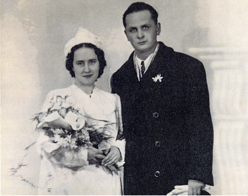 »24. februarja 1941 (dober mesec pred pričetkom vojne) sem se poročil. Poročil naju je v frančiškanski cerkvi brat Vilko (to je bila njegova prva poroka), na koru je prepeval zbor Orglarske šole pod vodstvom skladatelja dr. Franca Kimovca in ob orgelski spremljavi mojstra, skladatelja msgr. Stanka Premrla. Povedati moram namreč, da sva z mami bila redna pevca na koru v stolnici in pri Srcu Jezusovemu.