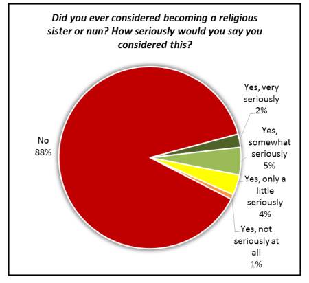 12 % žensk je resno razmišljalo o tem, da bi postale redovnice, kar v ameriški populaciji katoličank predstavlja 3,5 milijona žensk.