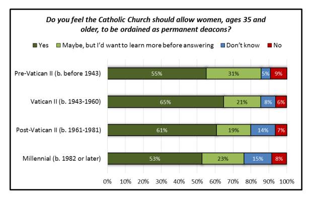 Večina žensk je mnenja, da bi Cerkev lahko dovolila ženskam starejšim od 35 leta, da bi postale stalne diakonese.