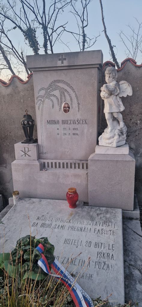 Z njim se odpravimo tudi na pokopališče, na katerem je pokopan dijak Mirko Brezavšček, član skupine Črnih bratov, ki je bil žrtev fašističnega terorja. Njegovi predniki so poznali tega fanta, ki je skupaj z ostalimi petimi dijaki ustanovil tajno organizacijo s tem imenom, ki je razširjala slovenske zastave ter trosila letake proti Mussoliniju. Vsa peterica je bila po izdaji zaprta in mučena. Mirka Brezavščka so pretepenega in izstradanega pripeljali domov, kjer je za posledicami mučenja 21. 2. 1931 umrl.