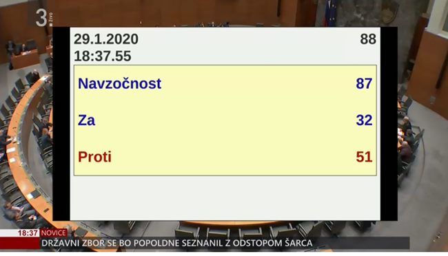 "Za zakon je glasovalo 32 poslancev (zakon podprli le v Levici, LMŠ in SD), proti pa 51 (poleg opozicijskih SDS, NSi in SNS so se proti zakonu izrekli še v koalicijskem DeSUSu, dva poslanca SAB in SMC!"