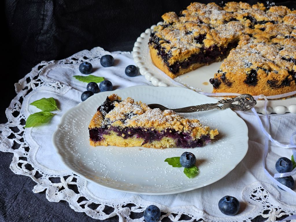 Pečico segrejemo na 180 stopinj Celzija, enakomerno gretje spodaj in zgoraj. Dno pekača premera 24 cm obložimo s papirjem za peko in notranjost oboda premažemo z maslom. Borovnice operemo pod tekočo vodo in jih v skledi zmešamo skupaj s sladkorjem in naribano limonino lupino. V večjo skledo damo moko, maslo sobne temperature, sladkor, rumenjaka, pecilni prašek ter ščepec soli. Z rokami vse skupaj premešamo, da dobimo maso strukture peska. Dve tretjini maslenega testa enakomerno nadrobimo na dno obloženega pekača, maso z dlanjo narahlo poravnamo, da dobimo dokaj enakomerno površino. Po testu enakomerno posujemo sladkane borovnice. Čez borovnice nadrobimo še preostanek testa. Sem in tja borovnice ostanejo vidne. Pekač postavimo v pečico, na srednje vodilo in pečemo 40 minut. Pečeno vzamemo iz pečice, ohladimo in posujemo s sladkorjem v prahu. V kolikor nam pita drobljenka ne poide takoj, se z njo lahko sladkamo do 3 dni.
