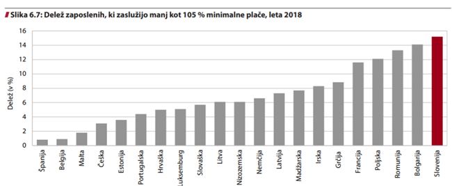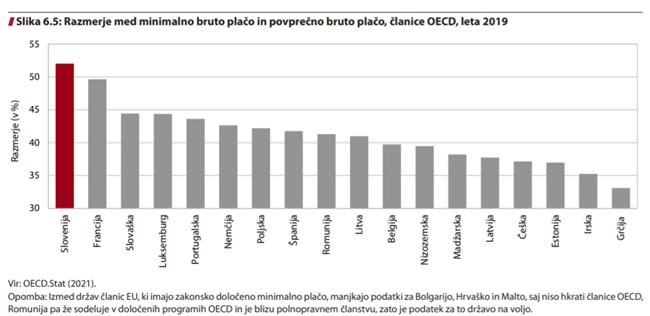 Razmerje med minimalno in povprečno bruto plačo se v članicah EU giblje med 33,1 in 52 %, kolikor znaša v Sloveniji. Z 52 odstotki povprečne plače je torej minimalna plača pri nas, glede na povprečje, daleč najvišja.