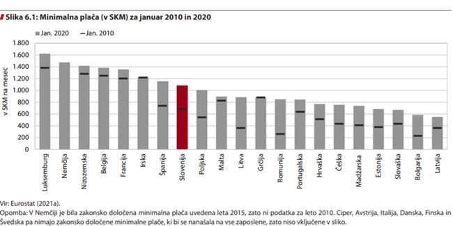 A rast minimalne plače ne gre vzporedno z rastjo povprečne slovenske plače. Pravzaprav je v Sloveniji razmerje med minimalno in povprečno bruto plačo z naskokom najvišje v Evropski uniji (blizu je le še Francija).