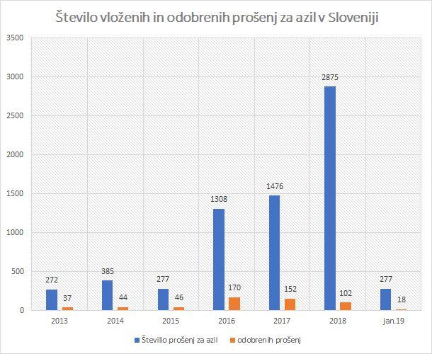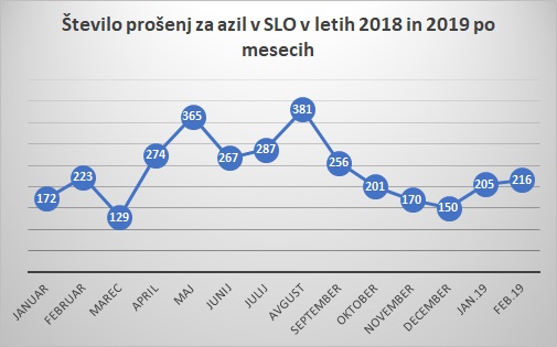 V prvih dveh mesecih tega leta je za mednarodno zaščito v Sloveniji zaprosilo že 421 prebežnikov, večinoma iz Alžirije, Maroka in Afganistana, od tega 393 moških in 28 žensk. Čeprav je prosilcev zadnja leta po dvesto in več na mesečni ravni, slednje ni predstavljajo prevelikega bremena za Slovenijo, saj so mnogi takoj po vloženi prošnji iz azilnega doma odšli neznano kam. Naši organi so postopke ustavili in se z njimi niso več pretirano ukvarjali.
