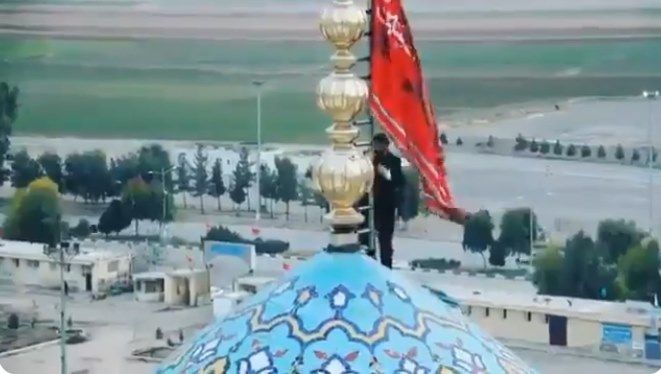 First Time In The History, Red Flag Unfurled Over The Holy Dome Of Jamkarān Mosque, Qom Iran.