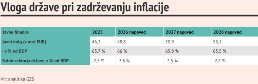 Zaradi višje inflacije se pričakuje večja vloga države pri blaženju socialnih in gospodarskih učinkov. To pa ima svojo ceno – delež javnega dolga naj bi znašal okrog dveh tretjin BDP, kar je slabše od prejšnjih pričakovanj.